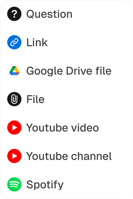They can be questions, links, media, or actions that invite the user to interact immediately.
